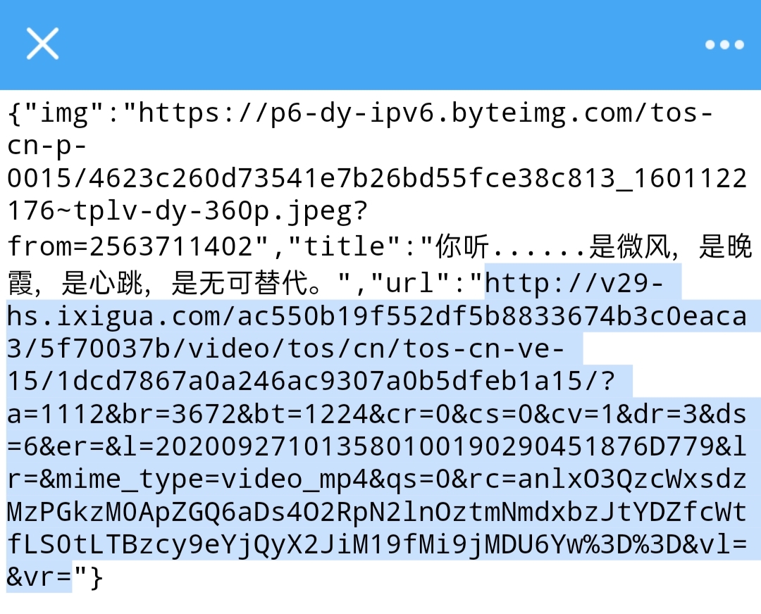 短视频解析接口,目前支持平台:抖音(源视频)、西瓜(源视频)、头条(源视频)、火山(源视频)、哔哩哔哩(最高画质)、微视(最高画质)、快手(最高画质)、皮皮虾(最高画质)。