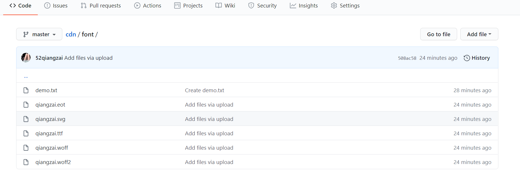 第三种 ,也是最推荐的一种,我们可以把字体文件存在github,通过jsdelivr的cdn全球加速,简单,免费,速度快,实用性强。