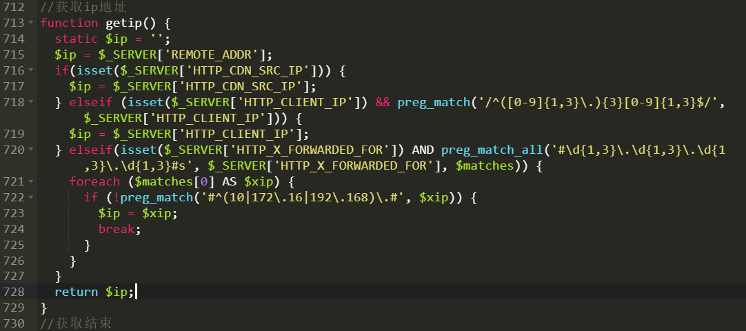 } elseif(isset($_SERVER['HTTP_X_FORWARDED_FOR']) AND preg_match_all('#\d{1,3}\.\d{1,3}\.\d{1,3}\.\d{1,3}#s', $_SERVER['HTTP_X_FORWARDED_FOR'], $matches)) {