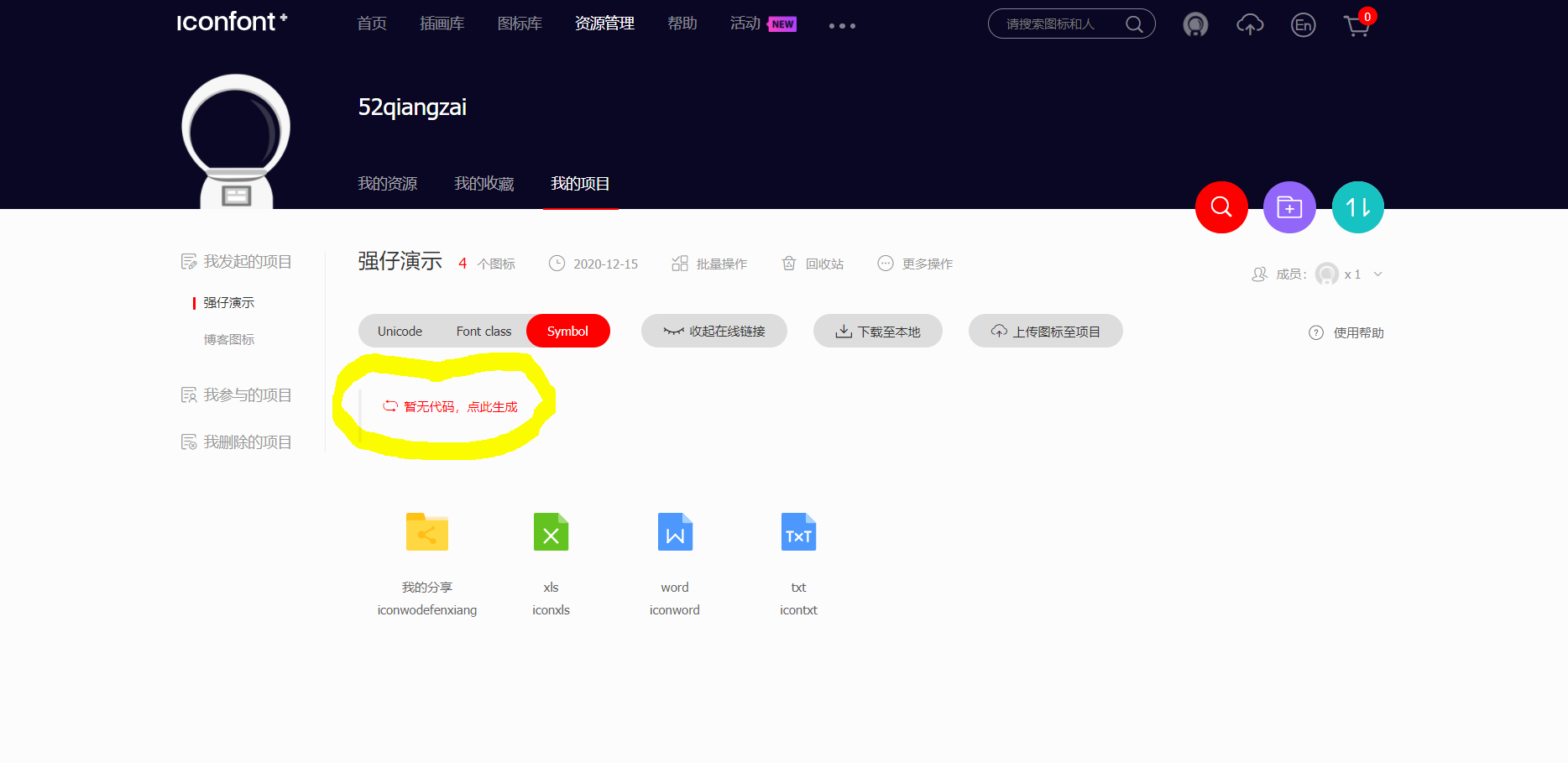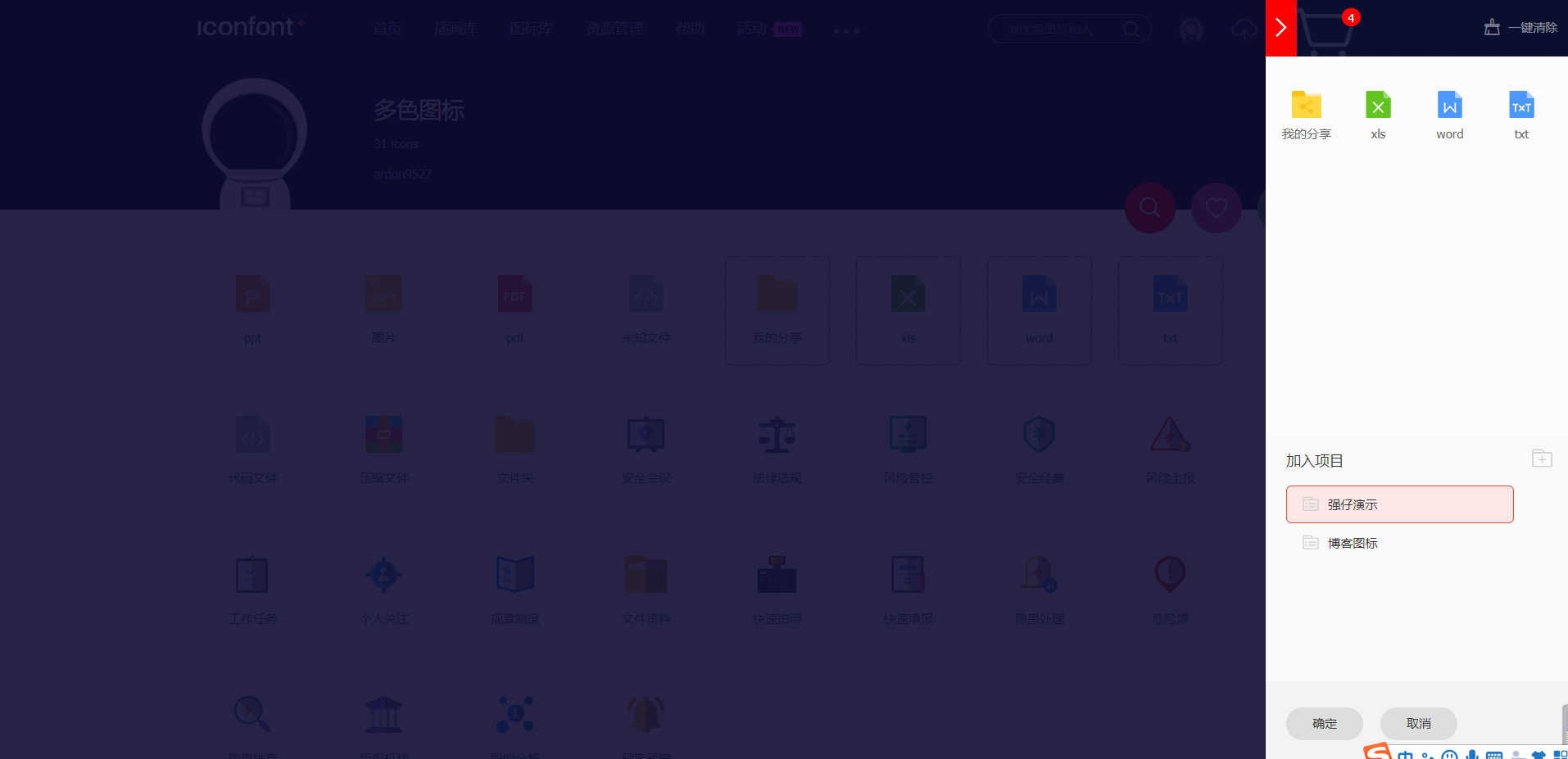 第一步: 新建项目,搜索想要的图标,并添加到项目文件夹中。
