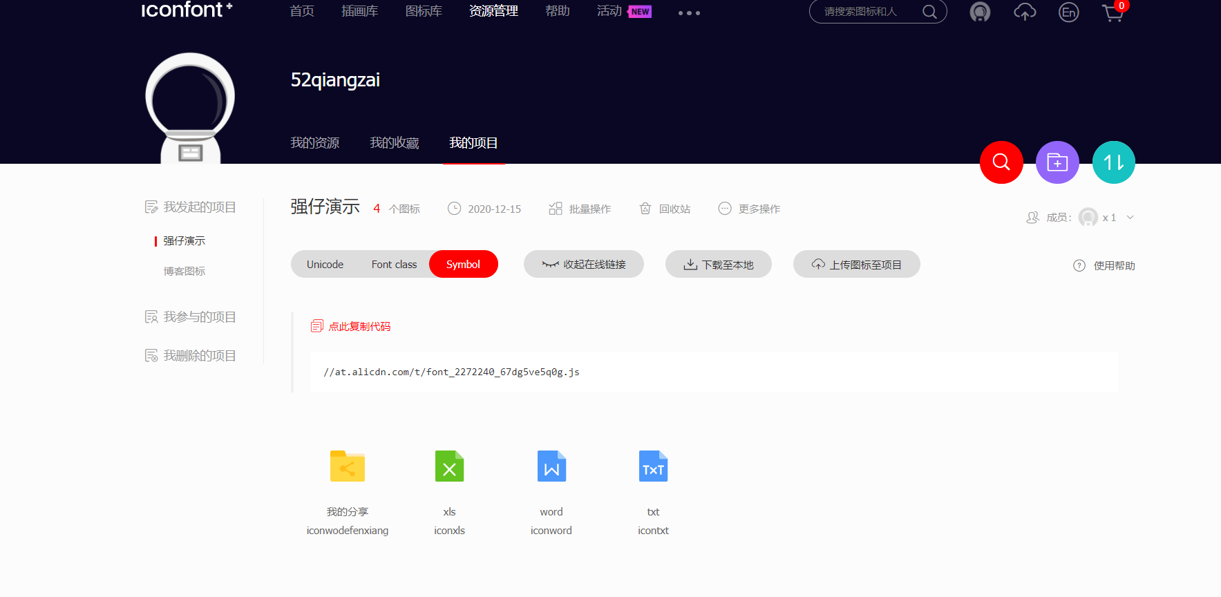 可爱的图标,iconfont确实很有前景,一直在引用。