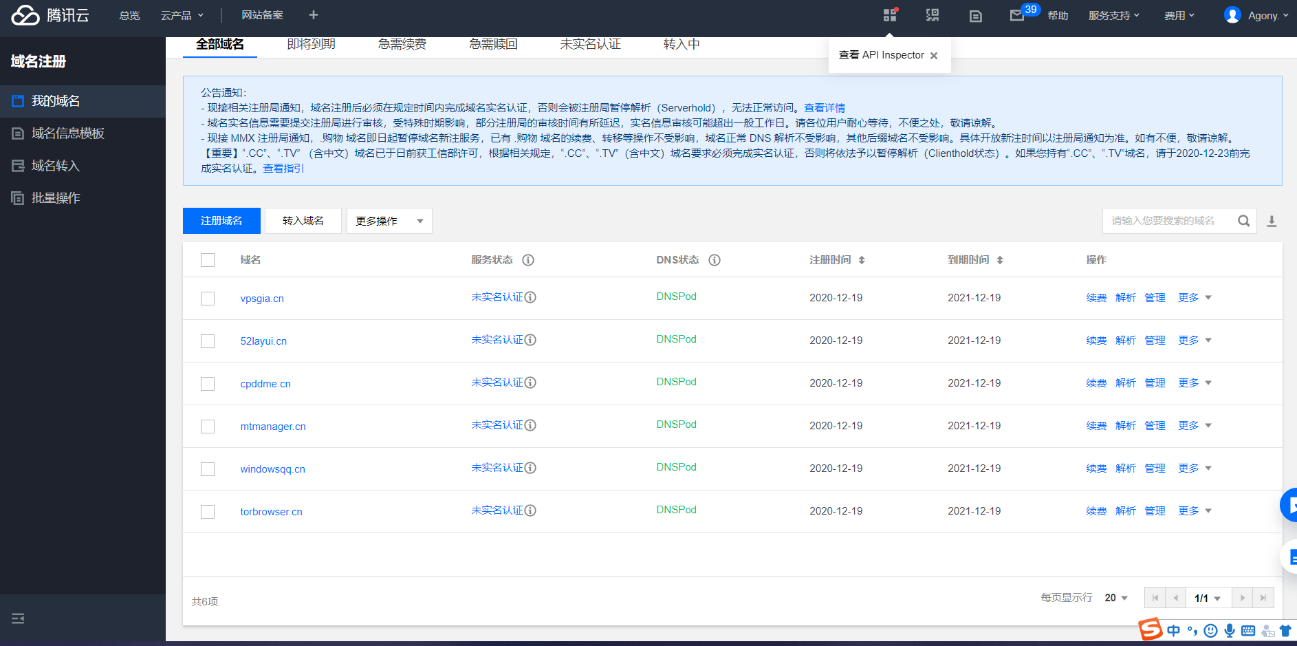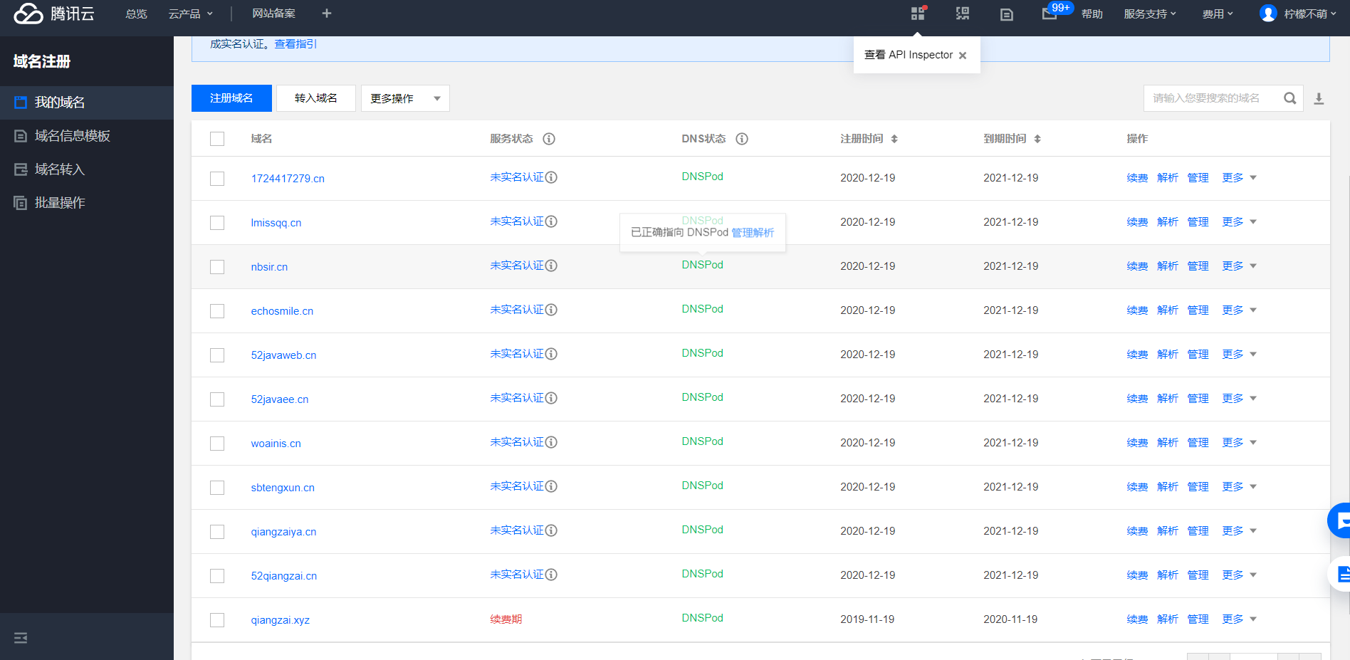 今天晚上,腾讯云官网出了Bug,cn域名注册大放血,0元首年无限注册,每个账号限制注册10个,好家伙,咱作为一名资深的老白嫖怪,这种事情肯定不能少了我,所以……嘿嘿