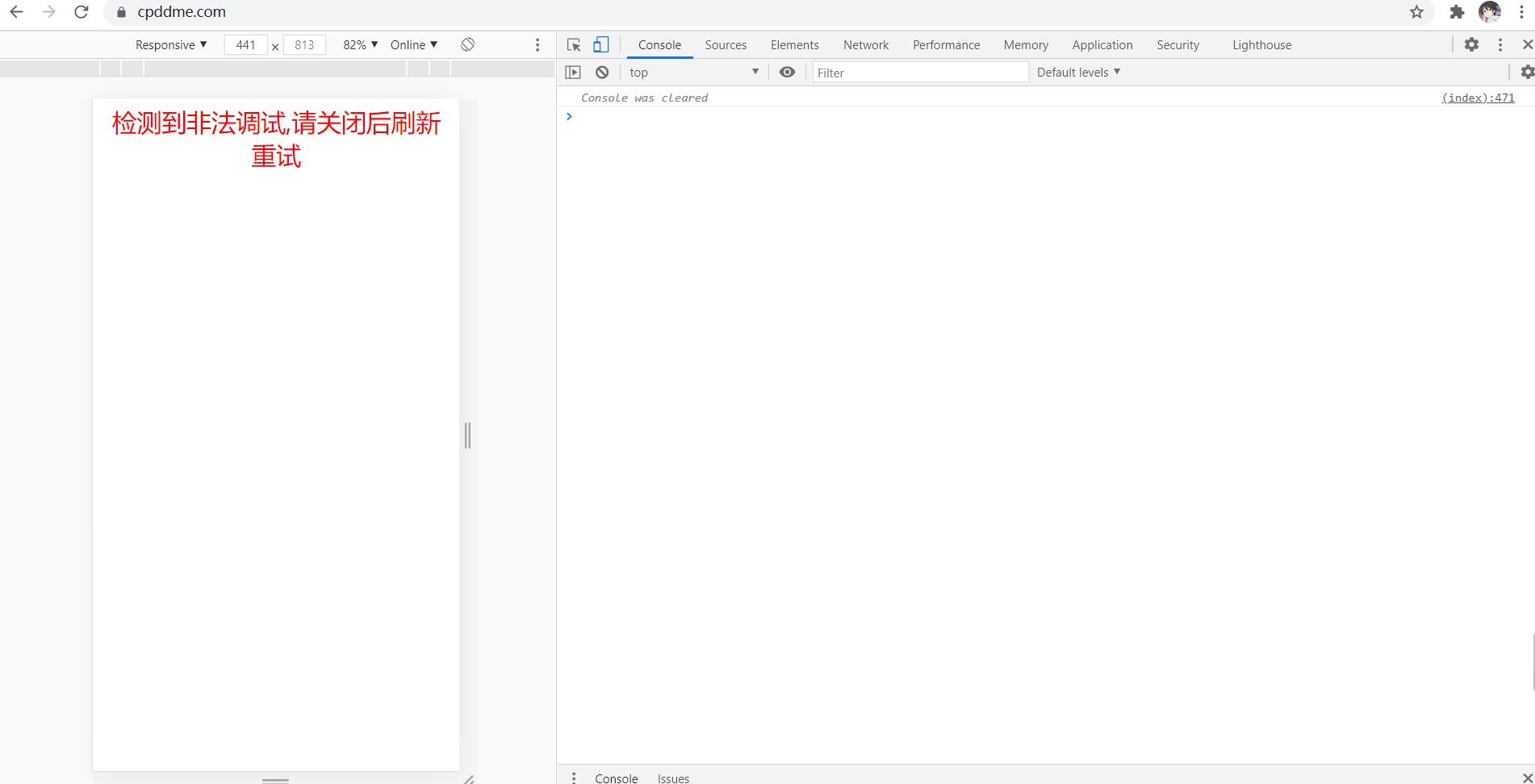 document.write('<div style="text-align:center;color:red;font-size:30px;">检测到非法调试,请关闭后刷新重试</div>');