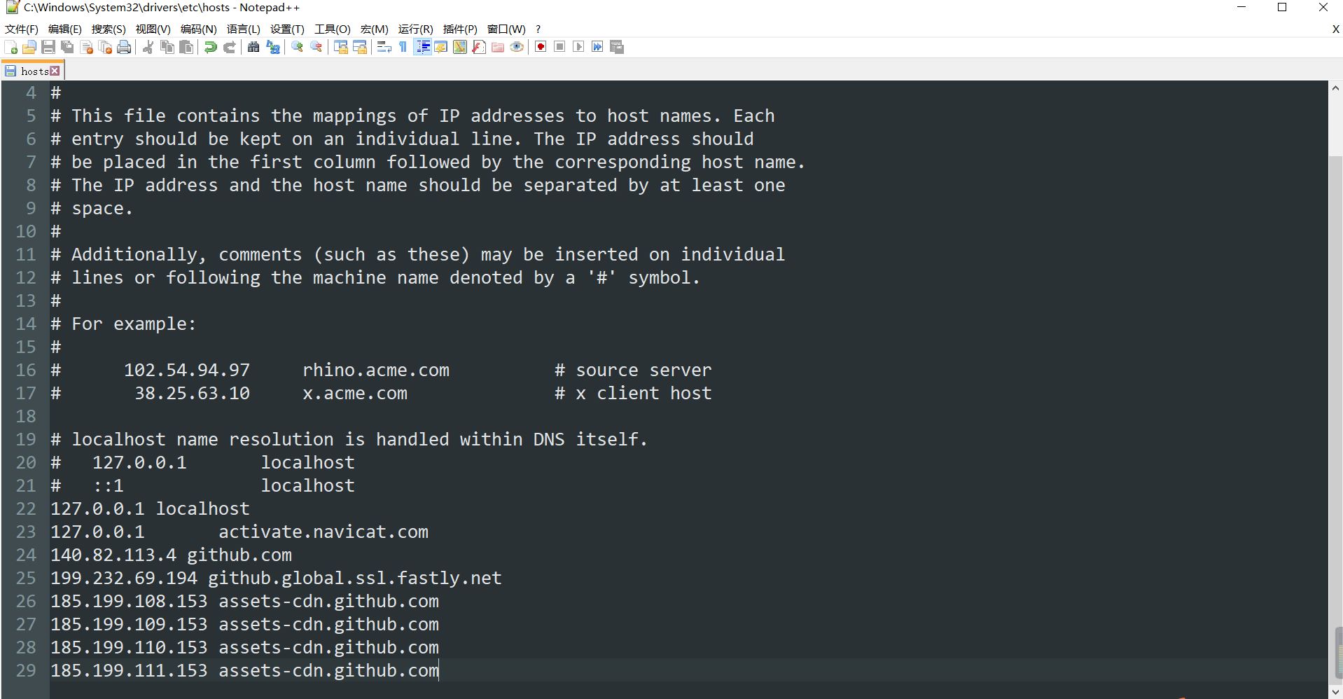 C:\WINDOWS\system32\drivers\etc系统的hosts文件在这个位置,修改hosts文件,末尾加上了这几行保存即可