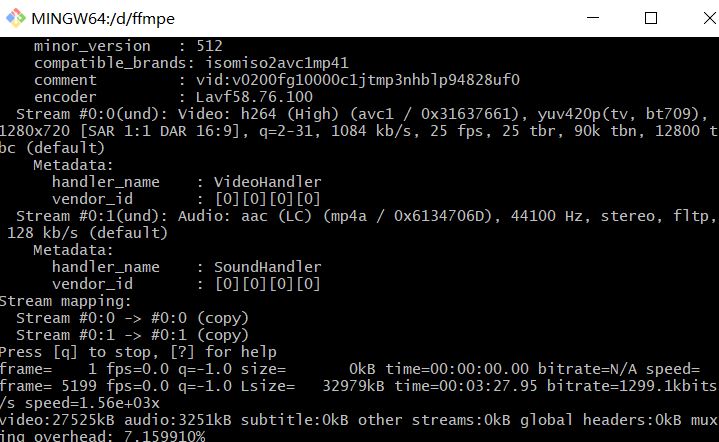 执行完毕会多一个ts文件,转换后大小没什么变化