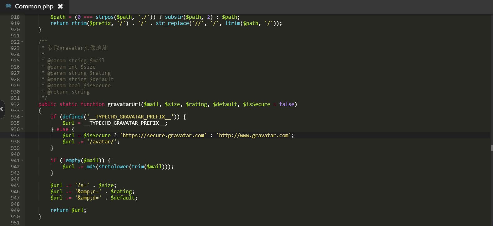 打开根目录下的var/Typecho/Common.php 文件,搜索查找 gravatarUrl 方法。