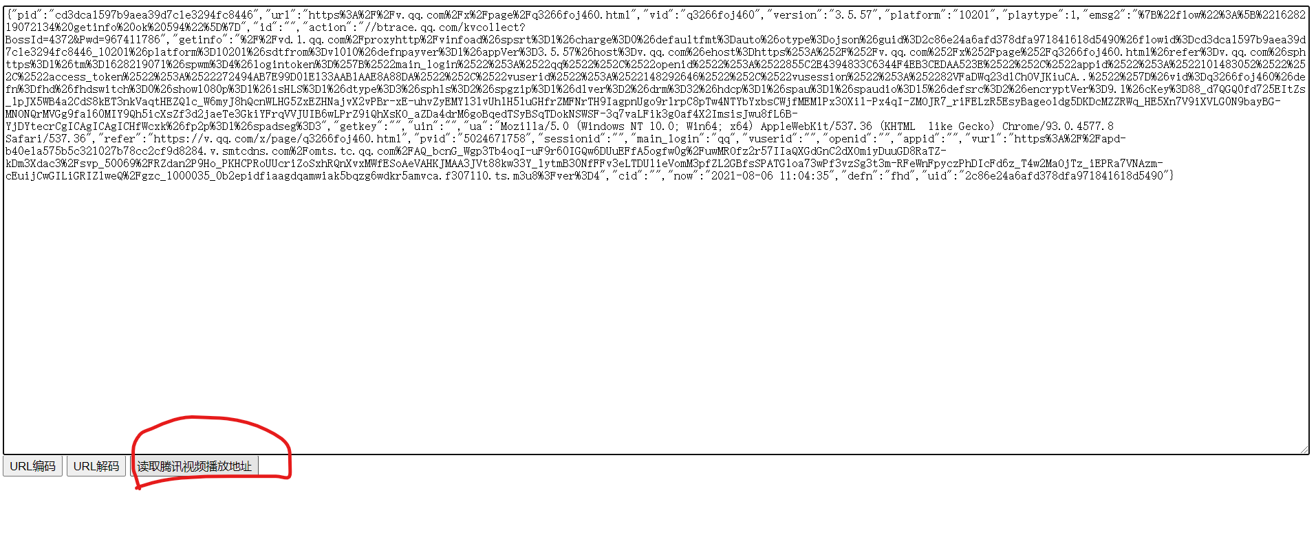粘贴复制的调试信息,点击读取腾讯视频播放地址即可