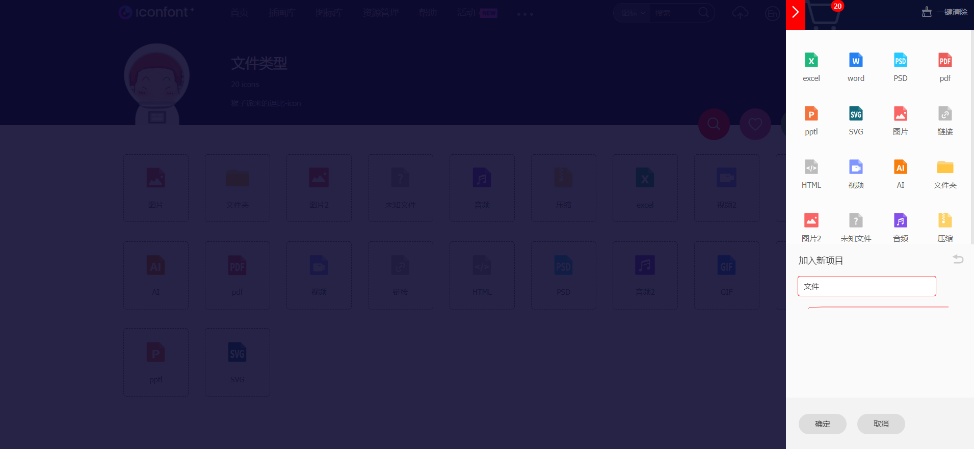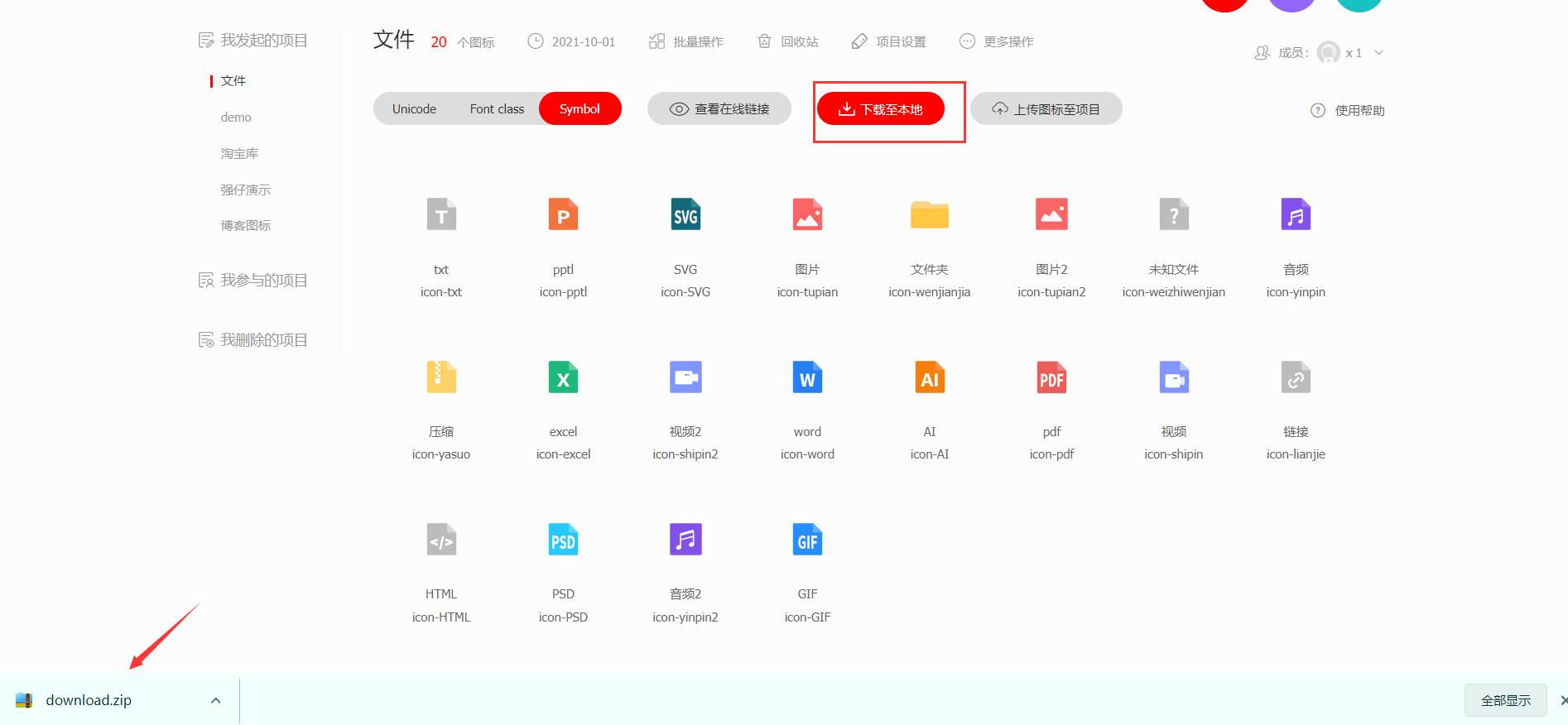 我们需要把我们调好的图标,添加到自定义的一个项目里,打包下载到本地