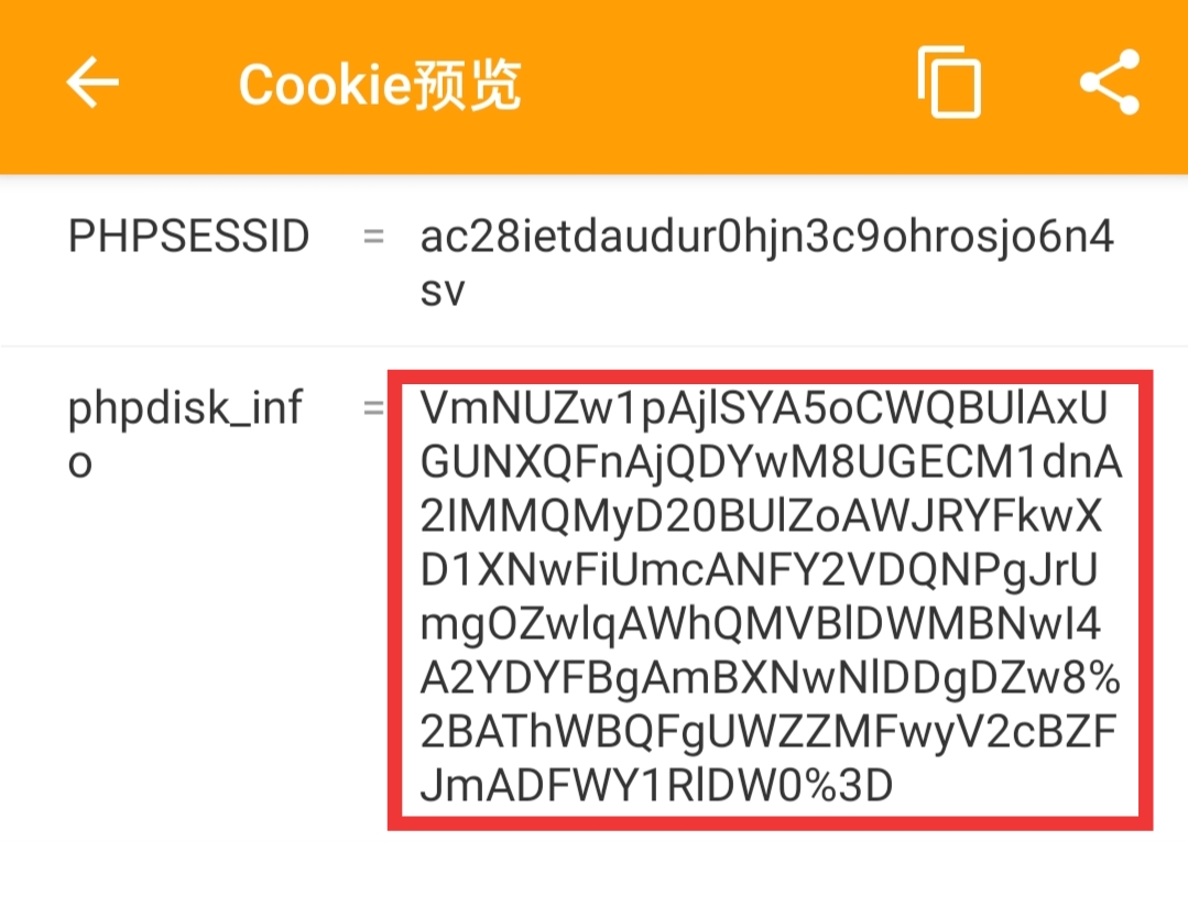 key 为 phpdisk_info \r\n那 value 这一串值自然就是我们需要的 cookie 了
